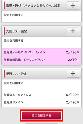 設定内容をご確認のうえ、【設定を確定する】を押します。